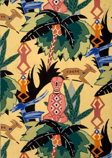 Jones quit fabric design and focused on the fine arts after a decorator told her that a “coloured girl” could not have produced her sophisticated designs. She began teaching alongside her prolific personal painting practice, which continued for the duration of her life. Jones’ work is often associated with the Harlem Renaissance, and she collaborated throughout her career with the likes of Langston Hughes and Aimé Césaire.